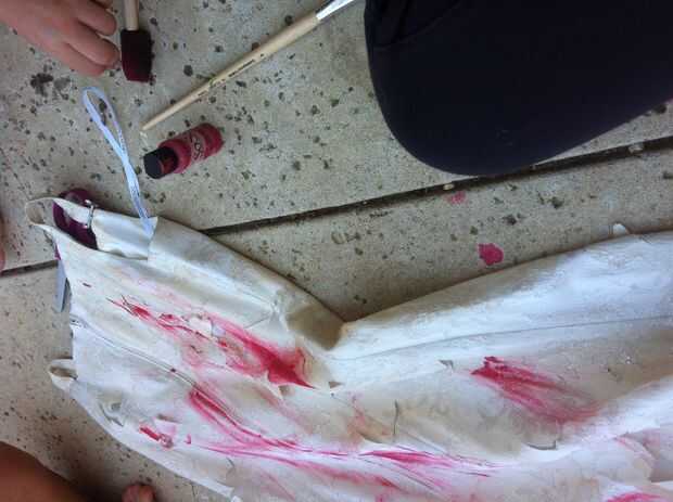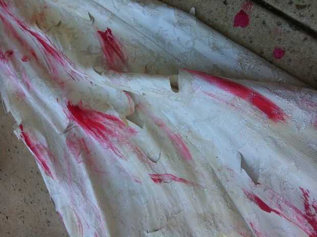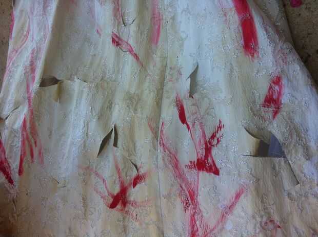 se trata de cómo hacer un disfraz de novia cadáver para mi hija para halloween.Empecé por buscar un vestido de Novia de segunda mano y tamaño hacia abajo por lo que encajaría con mi hija. I luego descosido la manga derecha y algunos de la longitud de