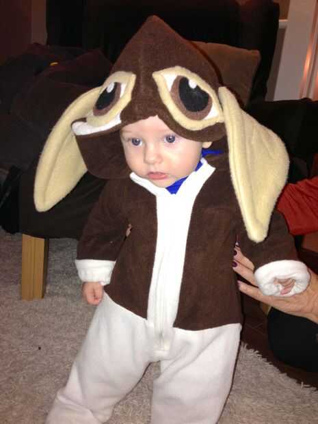 este año éramos una familia Nuclear para Halloween, con nuestra hija de 4 meses Corvidae disfrazado de un mutante feliz 3-armado.Que quería ser sutil, esto era casi demasiado sutil - que llevaba el traje todo el día, y casi nadie notó! Pero cuando f