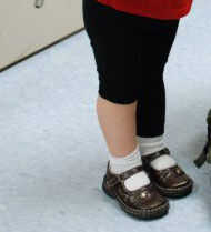 Los pantalones representan el ánodo y el cátodo del LED.  En la mayoría de LEDs ánodo es más largo que el cátodo.  Para representar esto, enrolla uno de los pantalones.