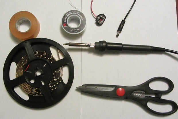 5 metros de tira LED luces en su elección de colores. La longitud dependerá en última instancia, el tamaño de la persona que usa el traje pero 5 metros es más que suficiente para un niño.