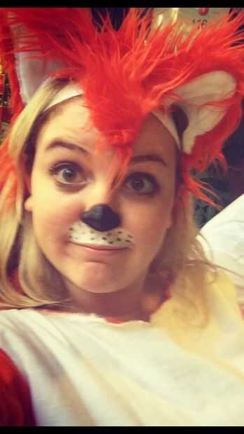 4) maquillaje. El maquillaje de la cara fue el maquillaje del traje estándar usted puede encontrar en línea o en un Halloween la tienda. Aplique negro en la punta de la nariz y luego un área blanca redondeada por encima el labio, decorado con pequeños puntos negros.
