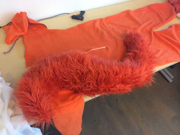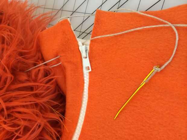 Foto 1A) arriba es la técnica de costura. La cola tiene que venir para arriba detrás de la cabeza, así que cosen a la parte posterior de su traje al lado de la cremallera, para que quede centrado pero no afecta el mecanismo de cremallera. Pegar la base de la cola justo encima de su hueso de la cola en el traje, y que debe contener. Puedes ver en la imagen.