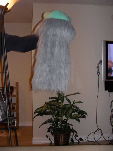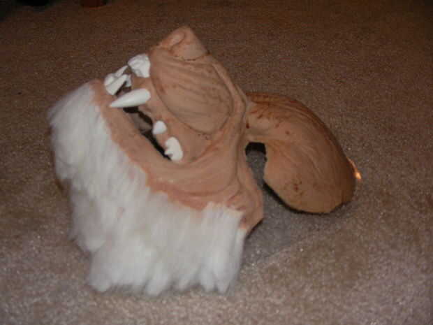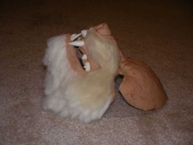 En un principio iba a dejarlo como está y simplemente pintura gris para que coincida con la piel, pero mi esposa pensó parecía demasiado miedo para ser el lobo feroz y no se verían bien con el resto del traje. Aprobó y decidió así la máscara de la piel.