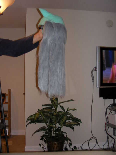 Creé a tiras del lado de pelo gris (se pueden ver en una de las fotos) para cubrir las zonas alrededor del lado de mis ojos. Éstos por maquina hice la piel a algunas redes que tengo de tela JoAnns con el látex líquido. Será más tarde el pegamento de estos en algún espíritu o Pros-Aide. Pros-Aide es un adhesivo utilizado para pegar el latex a la piel y también se puede encontrar en tiendas de disfraces y en línea.