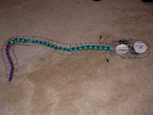 Después de poner todo junto, estaba un poco decepcionado en qué tan bien funcionó. Necesitaba unos dos o tres días más para resolver todos los errores, pero estaba fuera de tiempo. Mis servos no tenían suficiente esfuerzo de torsión, así que sustituye a uno con un modelo de esfuerzo de torsión más alto y decidió que podía vivir con la wag de lado a lado limitada proporcionó.