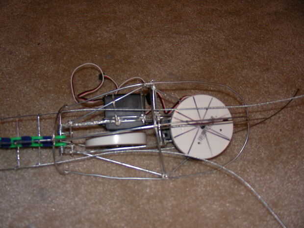 El siguiente paso consiste en crear una jaula para los servos que controlará la cola. Se trata de alambre de corte y juntos para formar una jaula protectora de soldadura y montaje de puntos para los servos que crean la parte de atrás y adelante y al lado del movimiento de la cola.