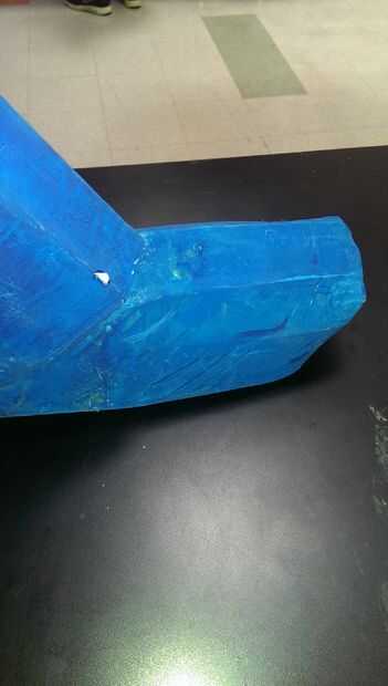 para hacer esta parte usted necesita un seprate pedazo de cartón y envuélvalo alrededor de su pie después envuélvalo alrededor de su pie pintura azul que no te preocupes la cartulina será mantener la forma de su cola caliente foot.next o grapa la parte del pie en la parte inferior de la pierna pero asegúrese de que tener espacio para poner pies en ella.