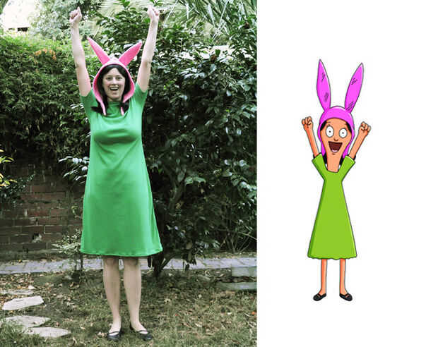 Me gusta el show hamburguesas de Bob, especialmente Louise Belcher. Ella es hilarante. Decidí ser ella para Halloween y fue capaz de preparar esto en un fin de semana (probablemente podría hacerse en medio día, pero me sale lento y distraído fácilmente). Es realmente grande para un último minuto traje puesto que todo lo que necesita es un vestido y un sombrero!