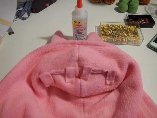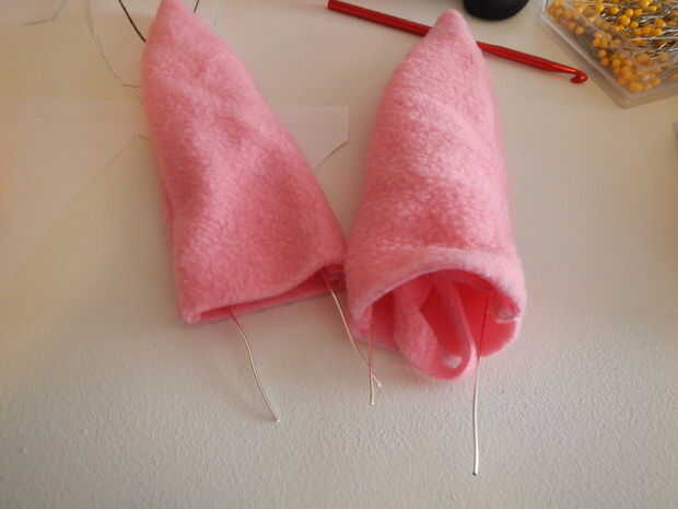 Pero, para realz, debería poder seguir su Instructable para hacer el sombrero. Otro cambio vendrá cuando termine de colocar las orejas al sombrero, vas a doblar los cables en exceso de las orejas hacia atrás y luego pegar un pequeño trozo de tela sobre ellos. Esto será no sólo ocultar los cables, pero tenerlos doblados detrás ayudará los oídos mientras que usted está usando el sombrero.