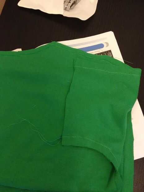 Muy bien, coser. Primero cosí los dos lados y la parte superior dejando la inferior, agujero del cuello y los dos agujeros del brazo abierto. Después se realizaron los había cercado las mangas, luego el cuello y, por último, la parte inferior. Sólo doblé los bordes una vez de mangas y cuello, porque eso es lo único que queda espacio para, pero dobló sobre el borde inferior porque tenía un montón allí.