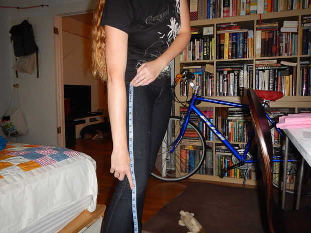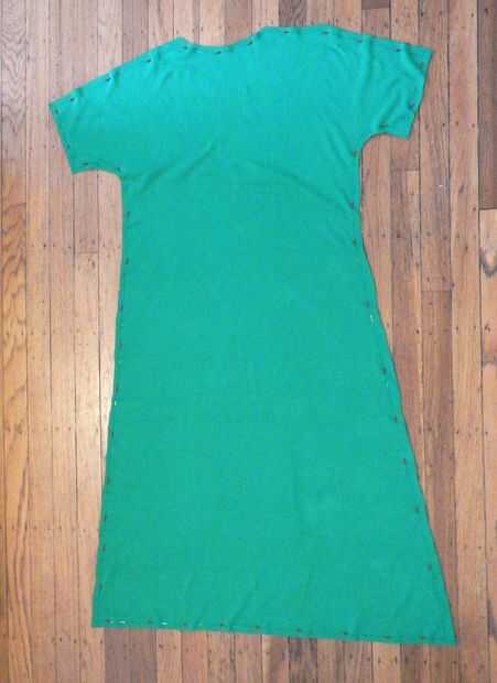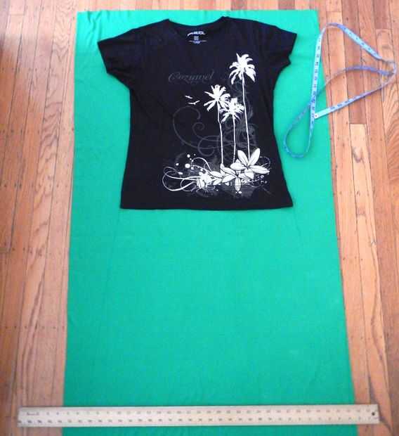 Tiempo para hacer un vestido o comprar un vestido verde. Antes de usar la camisa para hacer el patrón, mientras que lo usa, medida desde la parte inferior de la camisa a cómo lejos abajo quiere que vaya que debe ser sobre la rodilla (para mí era alrededor 18 pulgadas fui 20 seguro).