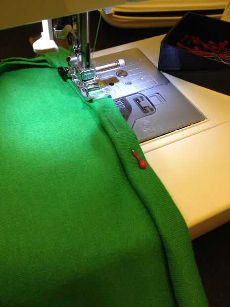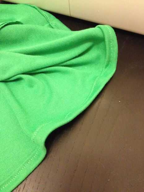 Yo sólo he cosido tela de estiramiento una vez antes y no ir muy bien, así que saqué mi manual de máquina de coser antes de comenzar. Cambiado hacia fuera la aguja de mi máquina al que el manual dice que use para estiramiento de la tela y la puntada que utilicé fue #2 para mi máquina que era la puntada recta para tejidos elásticos. Quería usar un overstitch a lo largo de los bordes, pero he probado primero y sólo parecían estirar la tela hacia fuera demasiado así que decidió no preocuparse y dejar todos los bordes crudos.