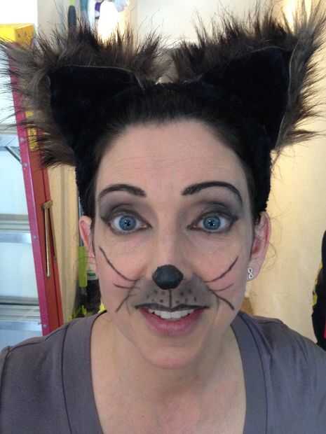 El último paso era maquillaje. Se puede ver en las fotos, el maquillaje comenzó como esencialmente un clásico gato o perro con dibujados bigotes, nariz y boca. Entonces progresó por agrandamiento de la nariz, oscureciendo el bozal, delineación y oscurecimiento de los ojos (ojos de mapache) un poco, pero no demasiado.