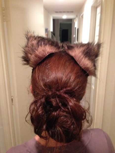 Para hacer las orejas, tomé la diadema existida / oídos que he comprado y utilizado al revés, para que la piel es la superficie que se vería, no el lado con negro lentejuelas. Llevó a cabo una hoja de la piel contra las orejas empezando en una esquina en la cima de las orejas y había doblado hacia abajo y hacia atrás hasta que hizo una curva agradable y tenía la dimensión me ha gustado mucho. Cortar en el lugar, pero era esencialmente triángulo con lados curvos y también curvado y extendido hacia abajo en la parte inferior del triángulo porque se extenderá hacia atrás y completamente hacia abajo en la cabeza del usuario. I utiliza pegamento caliente para pegar la punta de mi piel (en un pequeño Pellizco) y luego pegar el borde de mi piel en el borde exterior de las orejas ya existentes y la base de la diadema. Luego corté varias cuñas pequeñas (de unos tamaños diferentes) de la espuma de alta densidad y dry fit en las orejas para llenarlos así que mantuvieron una forma completa y curva 2 completo pulgadas hacia la parte posterior de la cabeza y en todas las direcciones. Cuando era feliz con mi prueba ajuste seco, cortar formas más similares para la otra oreja y luego arte había pegado en lugar.