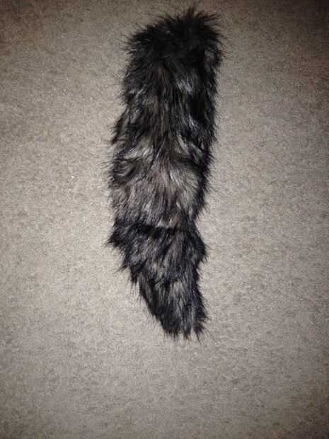 Para hacer la cola, tomó un arte completo piel hoja (dimensión de 9 "x 12") y la piel restante de los oídos (de 4 pulg.) Cosí las dos tiras juntas ocultando la costura y mezclándolos para aparecer como una sola pieza sólida. Es importante cortar solo el material del forro con pequeñas tijeras con punta para que el pelaje es de longitud completa todos se unieron. El uso de este nuevo aproximadamente 16" pedazo largo corté lo que era esencialmente un óvalo grande con cerca de los puntos en el extremo. Los cortes de forma ovalada le dará a la cola un aspecto curvo. Cosí la cola juntos, revés, dejando suficiente espacio en un extremo para introducir la cola de gato existentes. Había invertido la cola para que la piel estaba ahora en el exterior y tiró de los pelos por que he podido de las costuras. Ahora he insertado la cola de gato dentro del agujero que dejé para dar alguna forma a la cola y el cable dentro de la cola de gato me permitiría ajustar la forma de la cola y el lazo en el extremo de la cola del gato se utilizará para mi apego al mono del cohete. La cola del gato era muy delgada, así que es relleno de fibra de poliester usada para embalar la cola del cohete y rellene para darle forma de mapache. Por último, tuvo que coser al final de la cola cerrada para contener el relleno de cola y fibra cat. Usé el pequeño bucle de Satén de la original cola de gato y dos pernos de seguridad para sujetar la cola al mono en el extremo donde la parte superior de la cola se quedaría cubierta sólo por la parte inferior del chaleco.