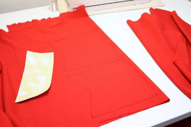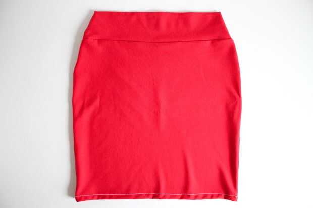 No pude encontrar una falda que entra bien o no era realmente corto, así que decidí coser una falda de punto. Encontré algunos grueso jersey rojo en Michael que parecía perfecto para ella!