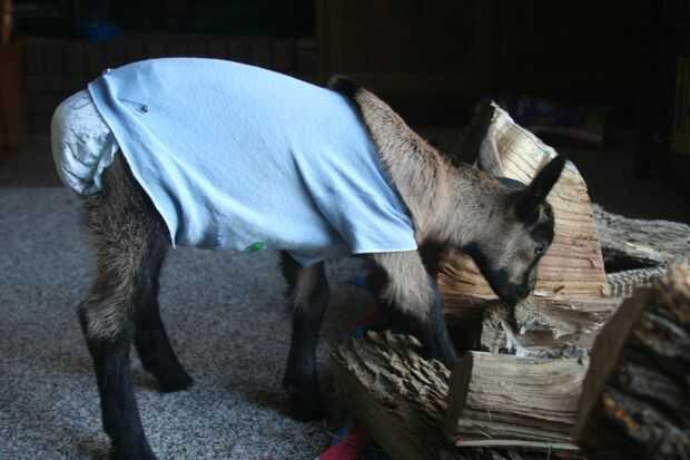Poner el pañal en la cabra * tendrá que cortar un agujero de cola dependiendo de tu animal
