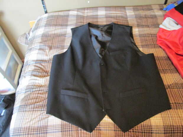 El resto de la vestimenta consiste en pantalones negros, una camisa blanca y un chaleco. Tenía todas estas ahí para que esto no era gran cosa. Una vez que había reconstruido juntos el traje, lo había rematado apagado con un par de zapatos de vestir.