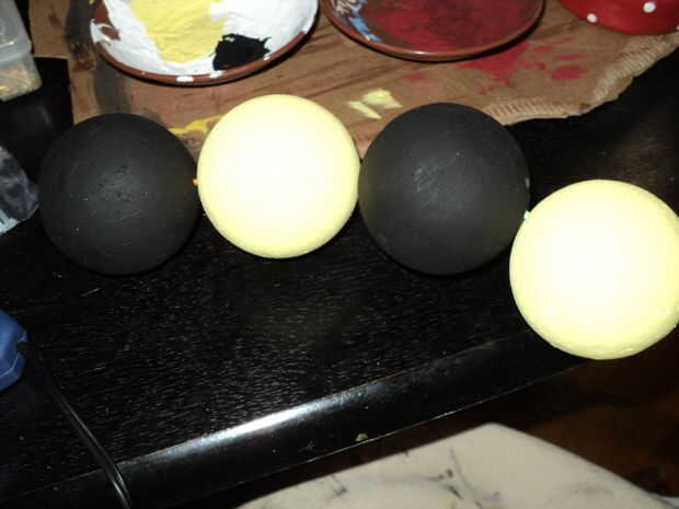 1. pintura amarillo 4 bolas, 4 bolas negras y 5 bolas más grandes rojo (ver foto 2)