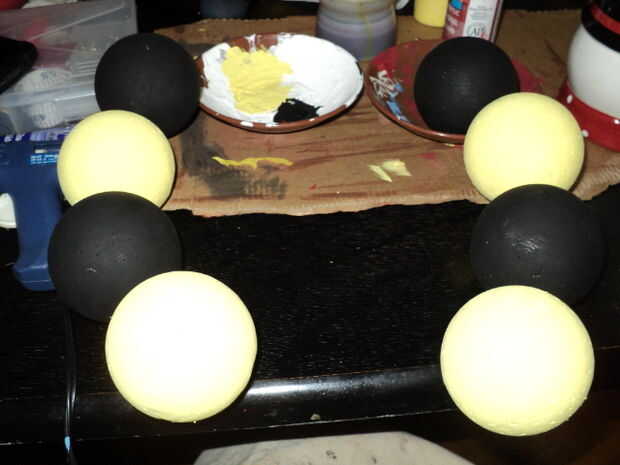 5. conectar negro a amarillo, de amarillo a negro y negro a bolas amarillas con palillos de dientes (ver foto 6)