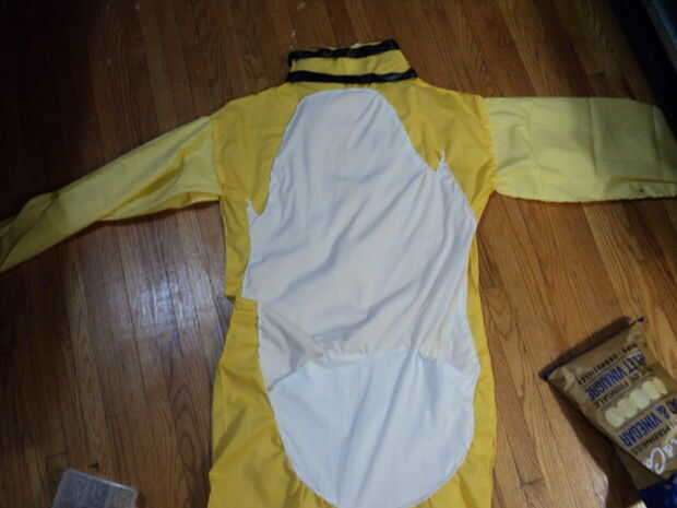 [Nota mis brazos eran un color diferente porque accidentalmente compré dos colores diferentes de tela, y hay una franja adicional de tela amarilla (25cm de espesor mis medidas fueron mal parece) en el interior de las piernas porque no sigo mi propio Consejo y no añadir la longitud extra así que mis piernas estaban demasiado apretados y no podía mover / doblar bien También tuve que cortar una pequeña línea en el cuello y añadir una tira de 4 cm porque no darle suficiente espacio y estaba demasiado apretado alrededor de mi cuello]