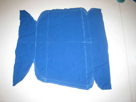 Medí el cuerpo de arriba a abajo luego la circunferencia en el diverso grueso. Luego fui a cortar algo más azul de tela después de trazar lo que yo pensaba era la forma.