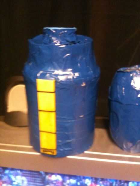 Envuelve todo en cinta para asegurarse de que todo y pintado de azul