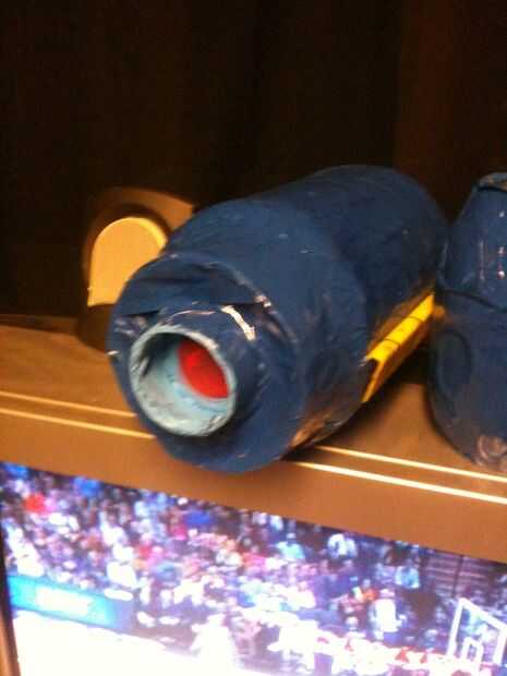 Entonces añadí una manija dentro con cinta adhesiva una pluma a cada lado