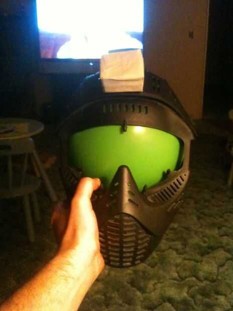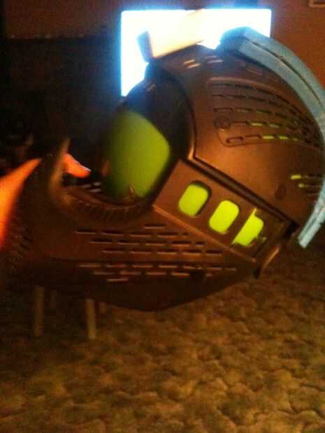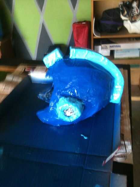 El casco utilicé una pintura vieja balling casco, adjunta espuma en la parte superior de la mohawk como partes, luego agregar luces de empuje para las partes del oído. grabado en y corte la parte delantera de la boca.