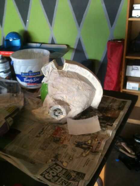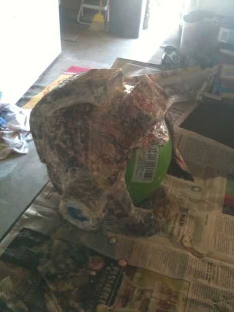 A continuación pongo papel maché alrededor de todo lo por lo que sería difícil