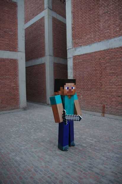 fue un simplificado traje que como un compromiso para el muchacho de Minecraft-obsesionada de mi novia, Halloween 2011. Terminó por tomar la parte mejor de un día para hacer, pero estaba muy contento con los resultados. La máscara está perfectamente
