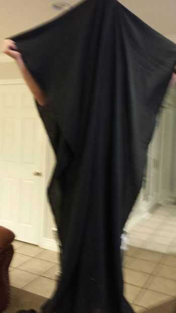 Realmente no utilizar a ninguna especie de patrón para esto. Empezamos con solo un pedazo largo de tela negra. Puse mis hombreras y zancos y luego llevó a cabo en mi cabeza para obtener mediciones. Luego corte una hendidura para la cabeza y el resto de la sastrería desde allí. Mi esposa coser unas mangas en (pongo mis manos esto así que sería conseguir la medida correcta) y cosido a los lados. Yo con flecos hasta el fondo para que se vea un poco más utilizado.