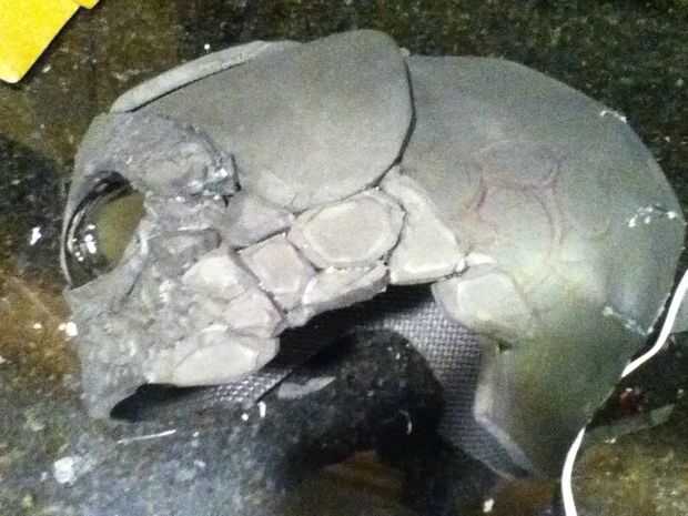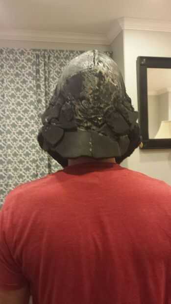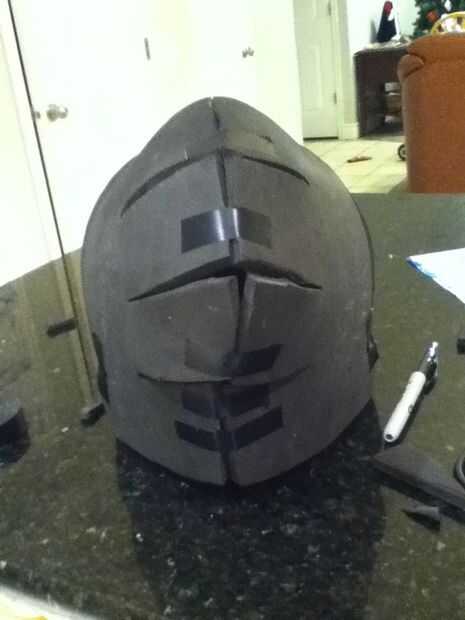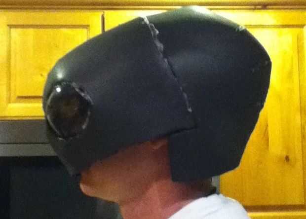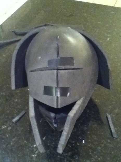 Durante todo el proceso seguí atarla sobre mi cabeza para asegurarse de que yo sería capaz de mirar a través de los orificios de ojos y visión máxima. Con el fin de que descanse bien en mi cabeza y no se mueva alrededor, construí un marco en el interior con trozos de espuma que alojarte seguro. La parte más importante de esta era mi nariz. He creado un rincón agradable que descansaba en el puente de mi nariz mientras no obstruyen mi visión en absoluto.