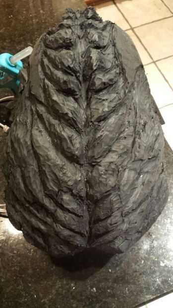 Una vez tuve la conformación/escultura terminado empecé pintando. No quiero que sea super llamativo, así que esto era simplemente minimalista para resaltar los bordes y profundizar las grietas. Creo que resultó bastante bien.