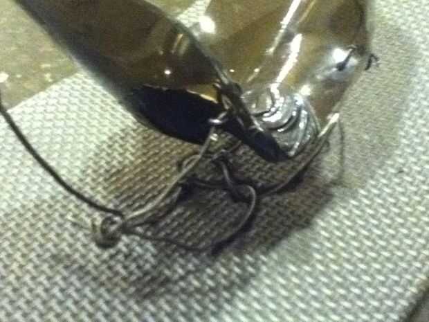 Luego perforar los agujeros para los cuernos y pegado en cantos de la carne por donde van.
