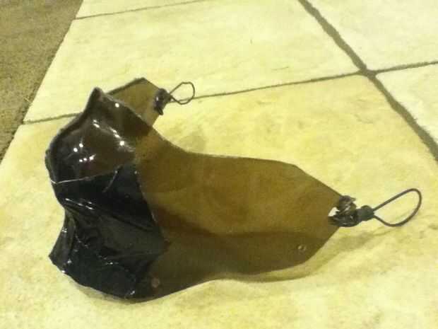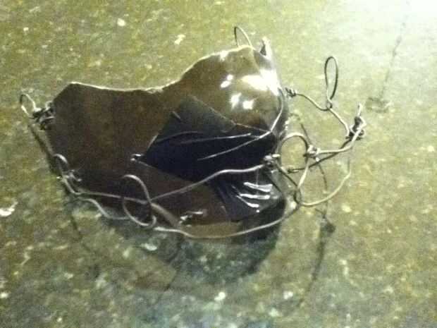 Entonces construí un marco de alambre de esta forma con alambre de enfardar. Taladré agujeros en lugares estratégicos en el plexiglás que no Cave en mi piel en absoluto. Luego, medir hasta qué punto la mandíbula debe ser, forma el alambre según sea necesario. He intentado hacerlo un robusto como sea posible, sin dejar de tener cierta flexibilidad para dar forma a futuro.