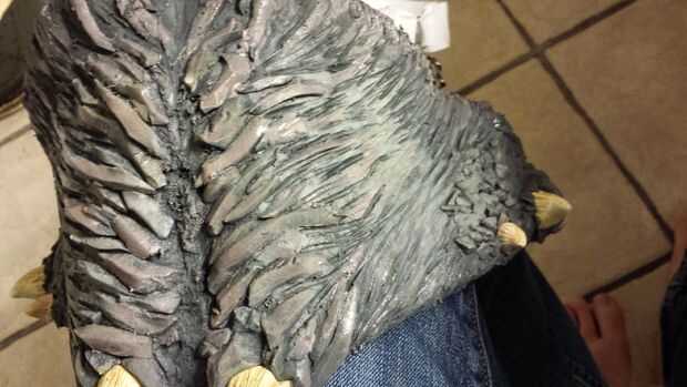Una vez que la forma general todo, pude agregar algunos detalles. Este fue uno de los momentos que me di cuenta cómo loco estoy. Comencé pegando en pequeñas tiras de espuma añadir cantos. Este agregado definitivamente a la mirada, pero fue minando hasta tiempo precioso. Por lo tanto, sacó mi dremel con un disco y comenzaron a replicar la textura que me estaba haciendo. Esto resultó muy bien y me salvo un par de horas de trabajo.
