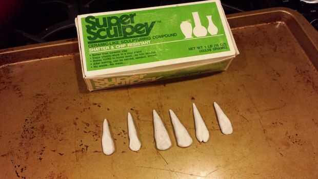 Un buen monstruo necesita espeluznantes cuernos y dientes para realmente darle esa ventaja extra. Utilicé Super Sculpey para hacer mío. Es una arcilla polimérica agradable que puede ser cocido al horno a la dureza en su horno.