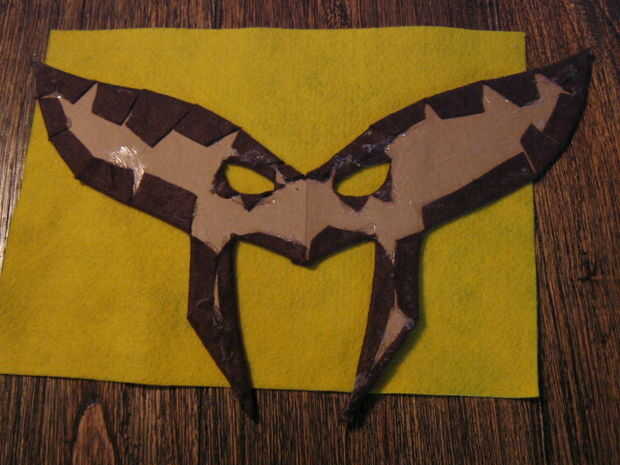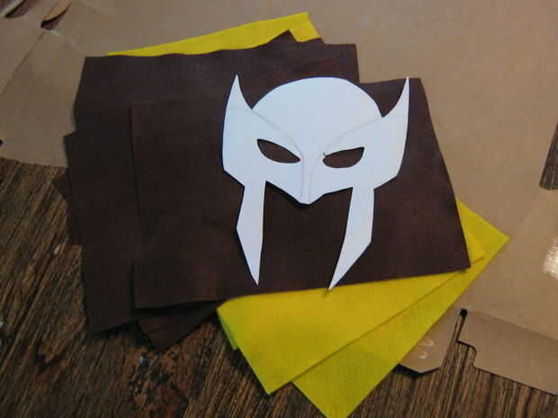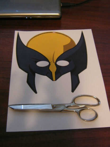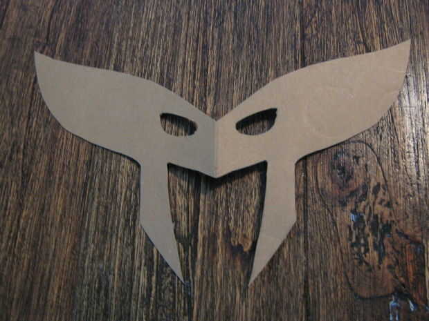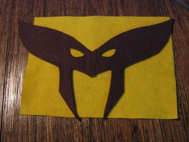 El primer paso sería ir en línea y tratar de encontrar una plantilla para una máscara de Hawkgirl. No había muchas para elegir. Sin embargo, había un montón de máscaras de Wolverine. Impreso uno, córtelo hacia fuera y había realizado mis modificaciones en el patrón.