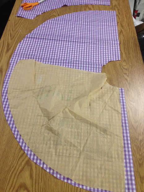 Tiendo a utilizar unos patrones diferentes en mi vestuario. Ya bailamos mucho, la mayoría de nuestras faldas necesita ser faldas de círculo para que llamarada hacia fuera en las vueltas... así que no usar un patrón específico. Solo de mano cosas escogidas de diversos patrones que ya tuve o acaba de hacer mi propia colocando entretela en el vestido forma o cortarlo hacia fuera por el ojo y dibujó en él con un marcador de exactamente lo que buscaba las formas de ser. A ver la falda de círculo en la foto y el patrón de la sección blanca en la zona del corpiño a mano en las fotos.