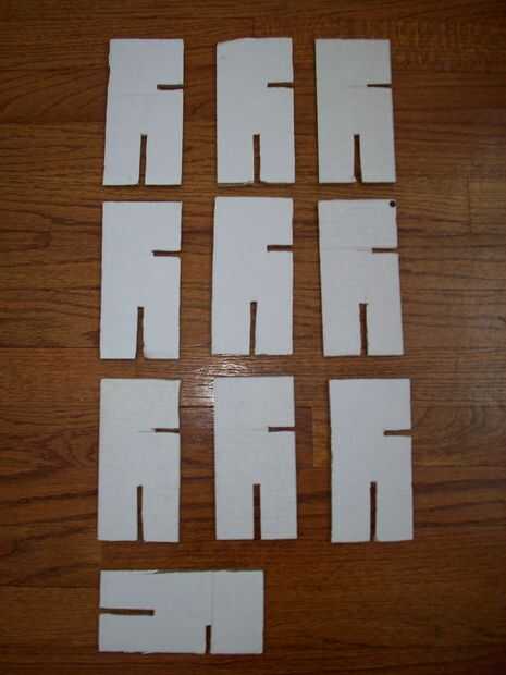1. con el lápiz (T4) se basan en la pieza de 1'x 1 ½' capa doble cartón (S4) diez 6 "x 3" rectángulos.