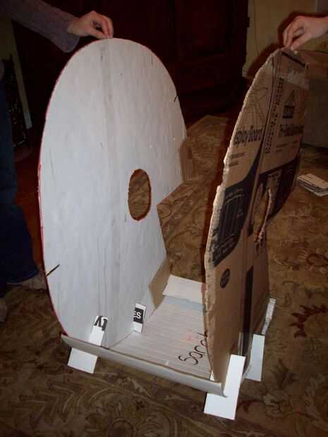 7. Deslice el extremo corto de la cáscara más pequeña detrás la pieza en la parte delantera más ranuras en el lado largo del círculo mientras que su pareja tiene el traje de la vertical.