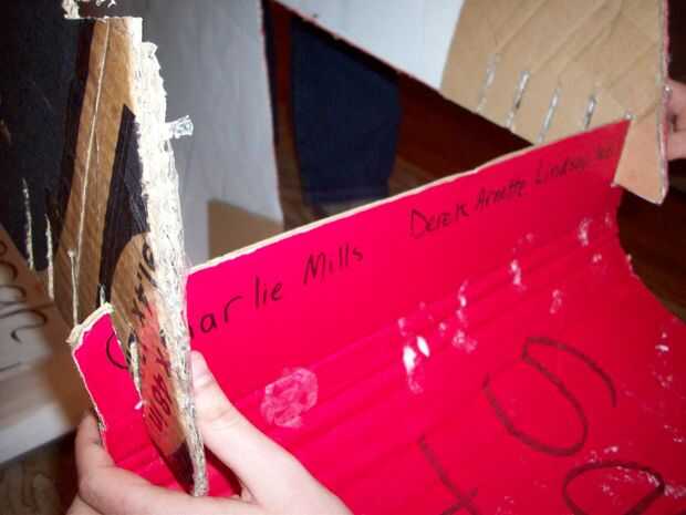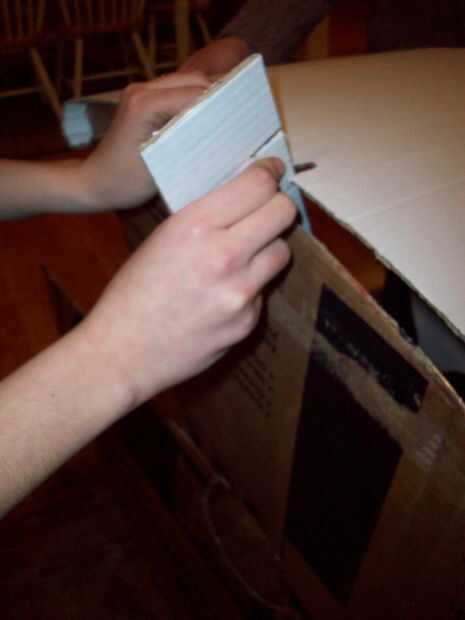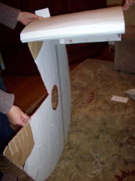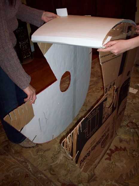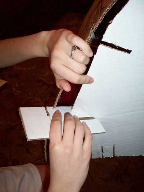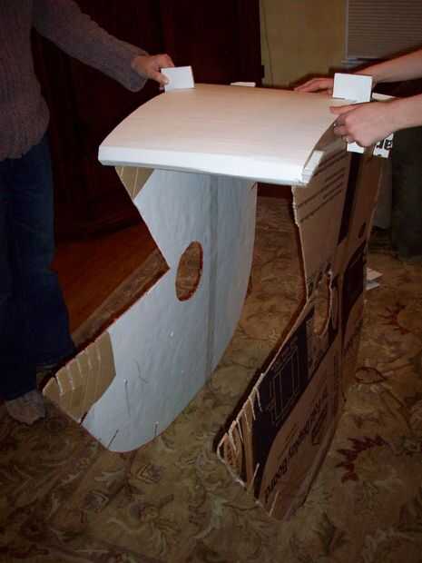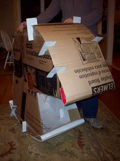 3. la ayuda se necesita ahora y para el resto de la Asamblea. Pare el traje con la ayuda de otra persona. Tienen su compañero mantener el lado de la cáscara en su lugar mientras inserta los conectores en las ranuras, fondo en primera.