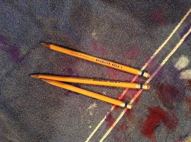 este proyecto crea la camisa para un traje de Halloween de Zombie Nerd.  El traje es como el Zombie se ha quedado estancada con un montón de lápices.Fuentes:Las fuentes básicas que necesita son tijeras de tela, tela blanca, puntada líquida (pegamento