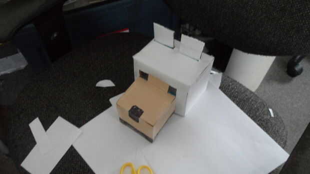 ahora que termines con el cuerpo, necesita a colorearlo.  He utilizado papel y había grabado hacia abajo, pero quizá quieras pintar o algo.  He hecho unas cuantas creaciones cartón antes de esto y pintura no funcionaba así.