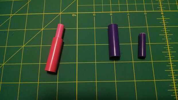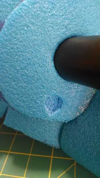 Las rejillas de ventilación debajo de los ojos se hacen de dos tamaños tamaños de tapones de marcador Crayola. Encaja muy bien en unos a otros y luego les pegan. Utilicé color de rosa y morado ya que mis hijos no utilizan esos colores mucho ;)