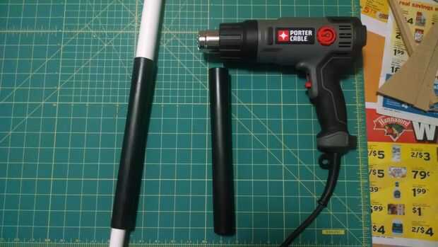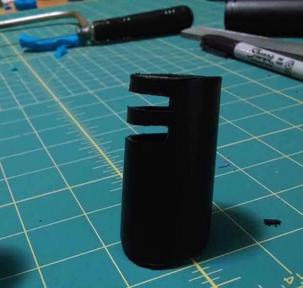 Forma de los ojos calentando el tubo con una pistola de calor entonces deslice sobre el pasamano de la escalera. Después de enfriar me corte el largo y había añadido ranuras mediante una herramienta Dremel.