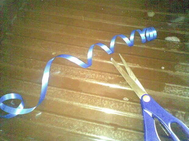 Usando tijeras o un rulo de cinta, enrollamiento de la cinta en rizos sueltos a lo largo de toda la longitud.