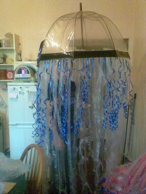 Los pescados de jalea rosa también en la foto al principio es un poco diferente, utilicé abrigo de burbuja en vez de bolsas de plástico para los tentáculos y agrega las tiras de papel crepé de vitalidad extra!