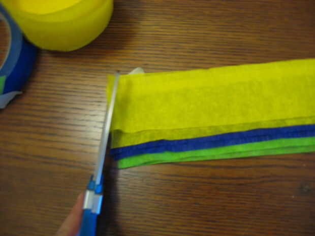 En general, el traje es una falda y una camisa cubierta con tiras de serpentinas Unidos por cinta. Algo que cada una sola capa de flámulas de la cinta, hice tiras con varias capas de serpentinas ropa adjunta, luego con cinta los "pinata tiras".